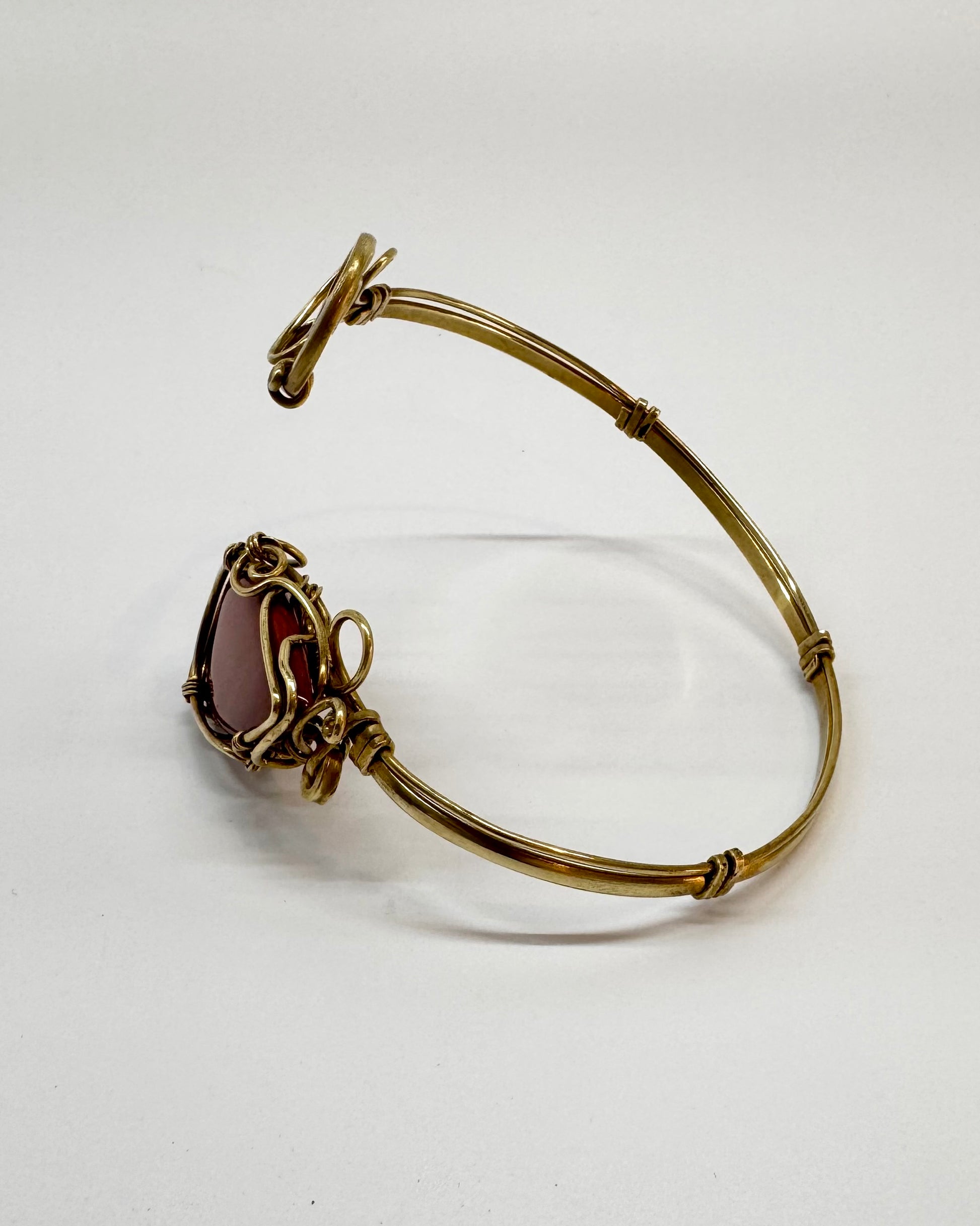 Bracelet artisanal en laiton et jaspe rouge. Ajustable. Technique du fil enroulé.