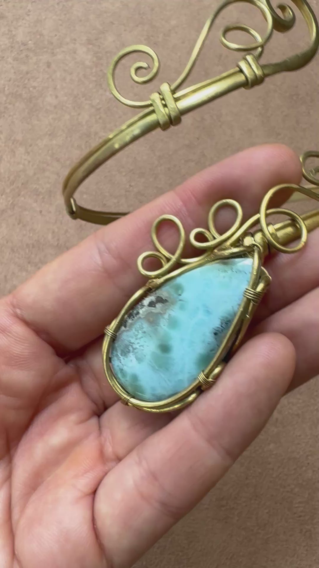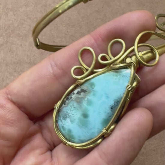 Brazalete de Larimar para el brazo, hecho a mano, ajustable.