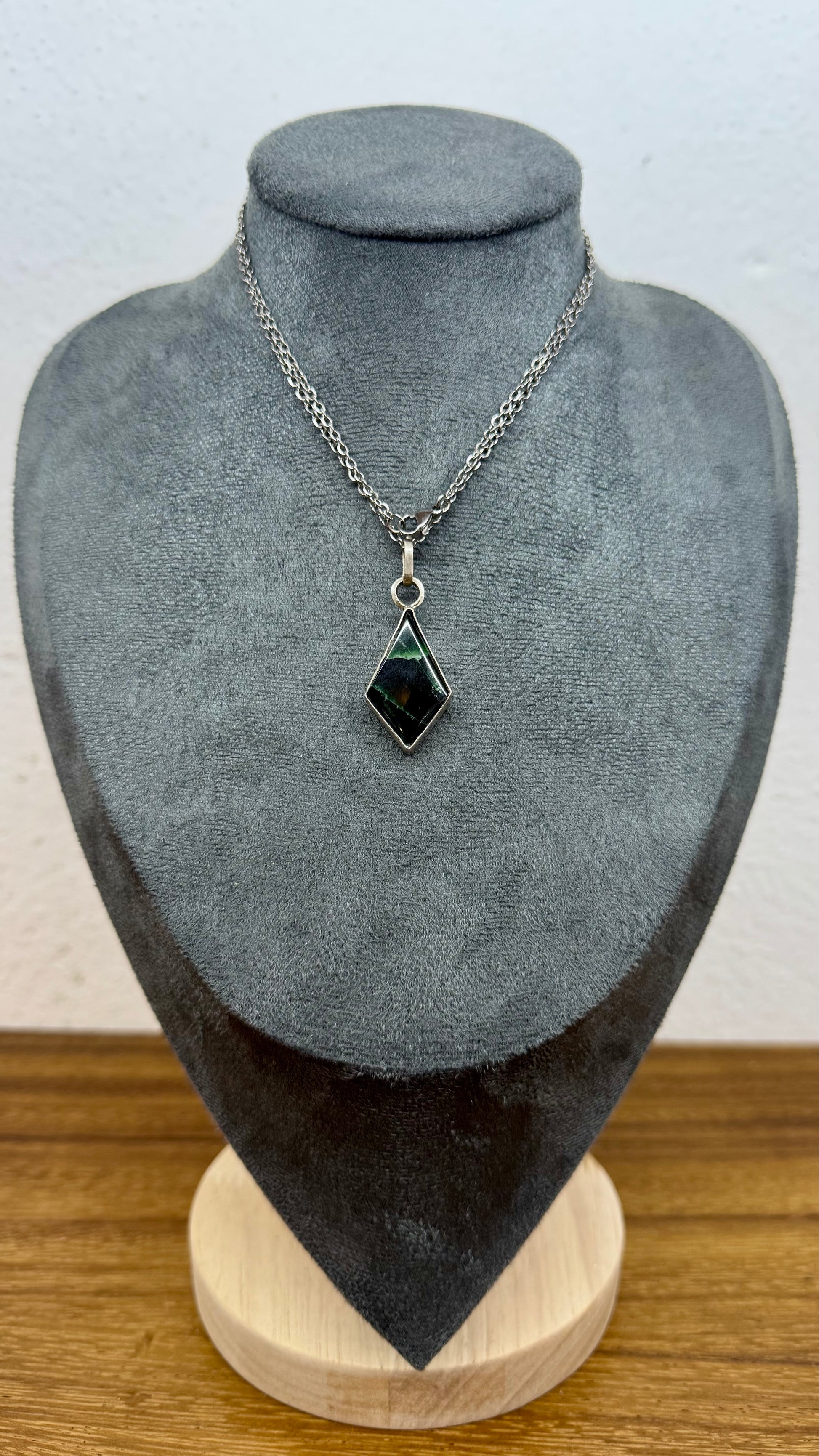 Colgante de Jade Jaguar engastado en plata 950. Hecho a mano. Jade jadeíta, llamado jaguar por su color verde oscuro. Este jade es extraído de Guatemala.