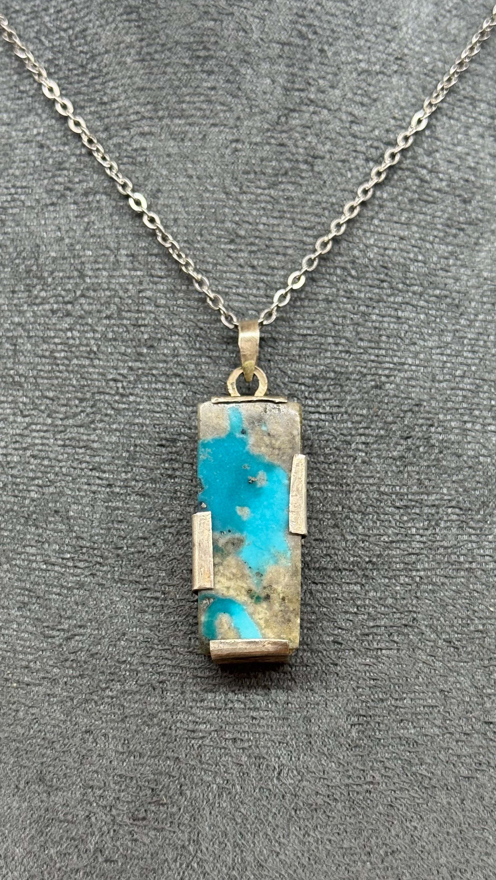 Colgante de Turquesa pakistaní. Engastada en plata 950.